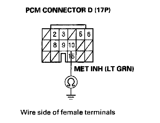 11. Check for continuity between PCM connector terminal D10 and body ground.