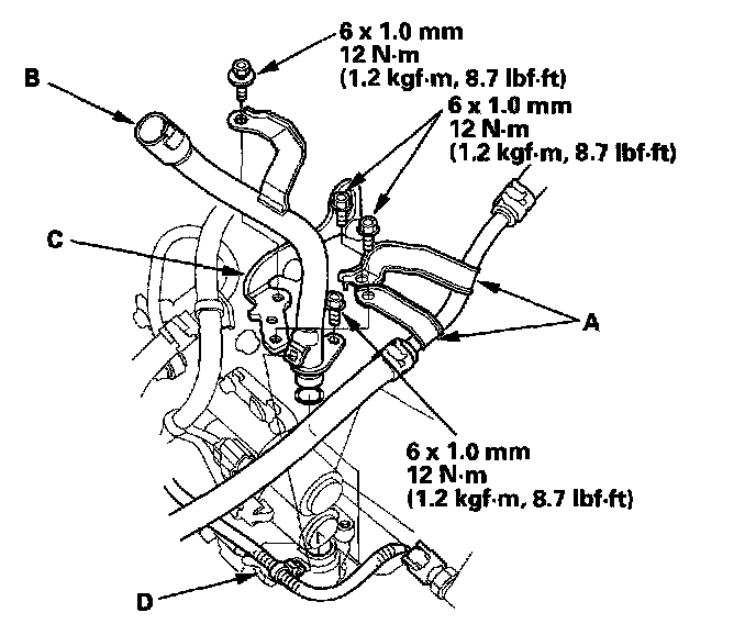 11. Remove the harness clamp (D), then remove the ATF dipstick guide pipe.