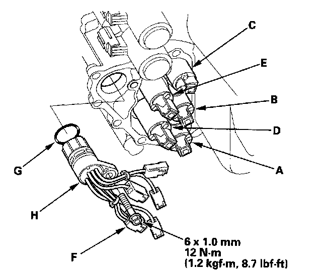 20. Install the new O-ring (G) on the shift solenoid harness connector (H), and install the connector in the transmission housing.