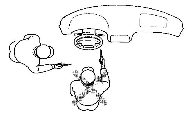 - Do not position yourself in front of the airbag assembly during removal, inspection, or replacement.