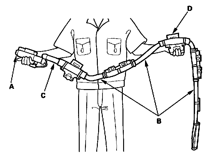 - When removing or installing the side curtain airbag inflator assembly, never handle the flexible bag (B) or the adapter pipe (C).