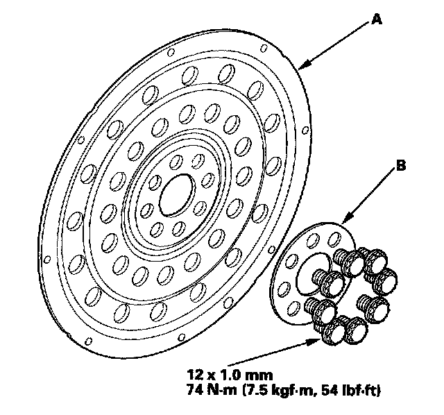 Drive PlateInstall the drive plate and washer on the engine crankshaft, and tighten the eight bolts in a crisscross pattern in two or more steps.