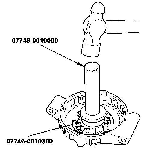 12. With a hammer and special tools, install a new front bearing in the drive-end housing.