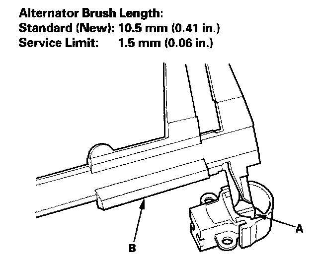13. Measure the length of both brushes (A) with vernier calipers (B).