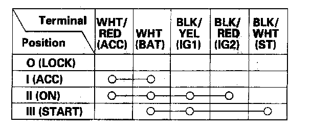 6. If the continuity checks do not agree with the table, replace the steering lock.