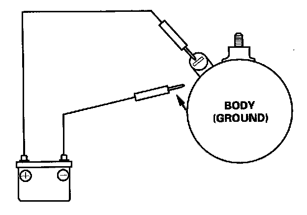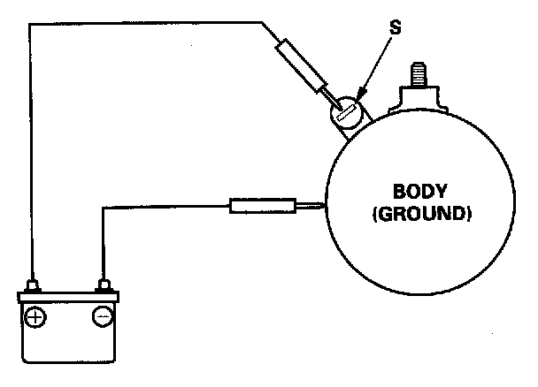Starter Performance Test1. Connect the battery to the starter as shown using as heavy a wire as possible (preferably equivalent to the wire used for the vehicle). To avoid damaging the starter, never leave the battery connected for more than 10 seconds.