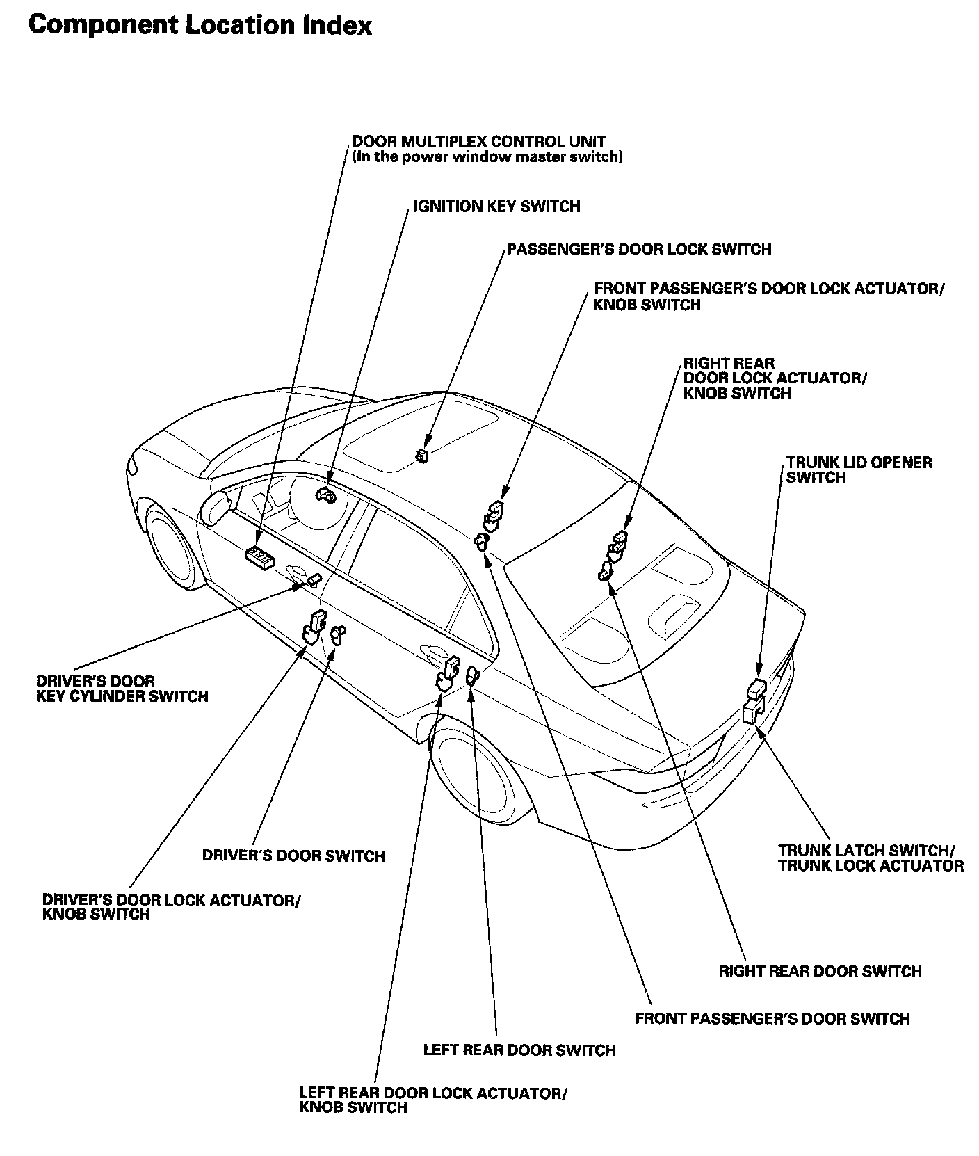 Keyless/Power Door Locks/Security System - Component Location Index: