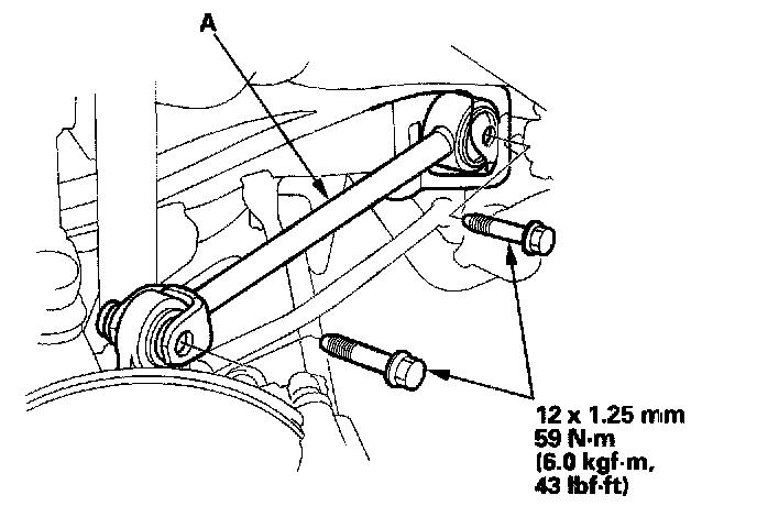 3. Remove the mounting bolts, and remove the leading arm (A).