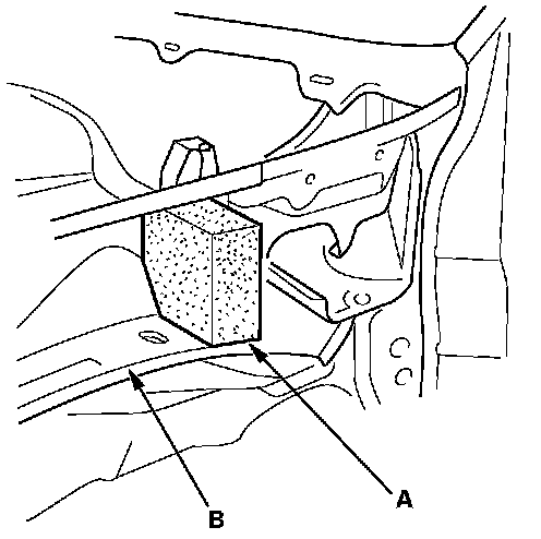 - Attach the patch (A) at the joint section of the wheelhouse upper extension (B), and weld it.