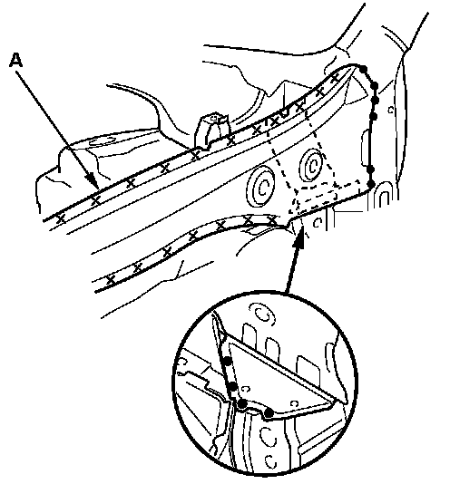 - Weld the wheelhouse upper extension (A) and dashboard upper side member extension (B).
