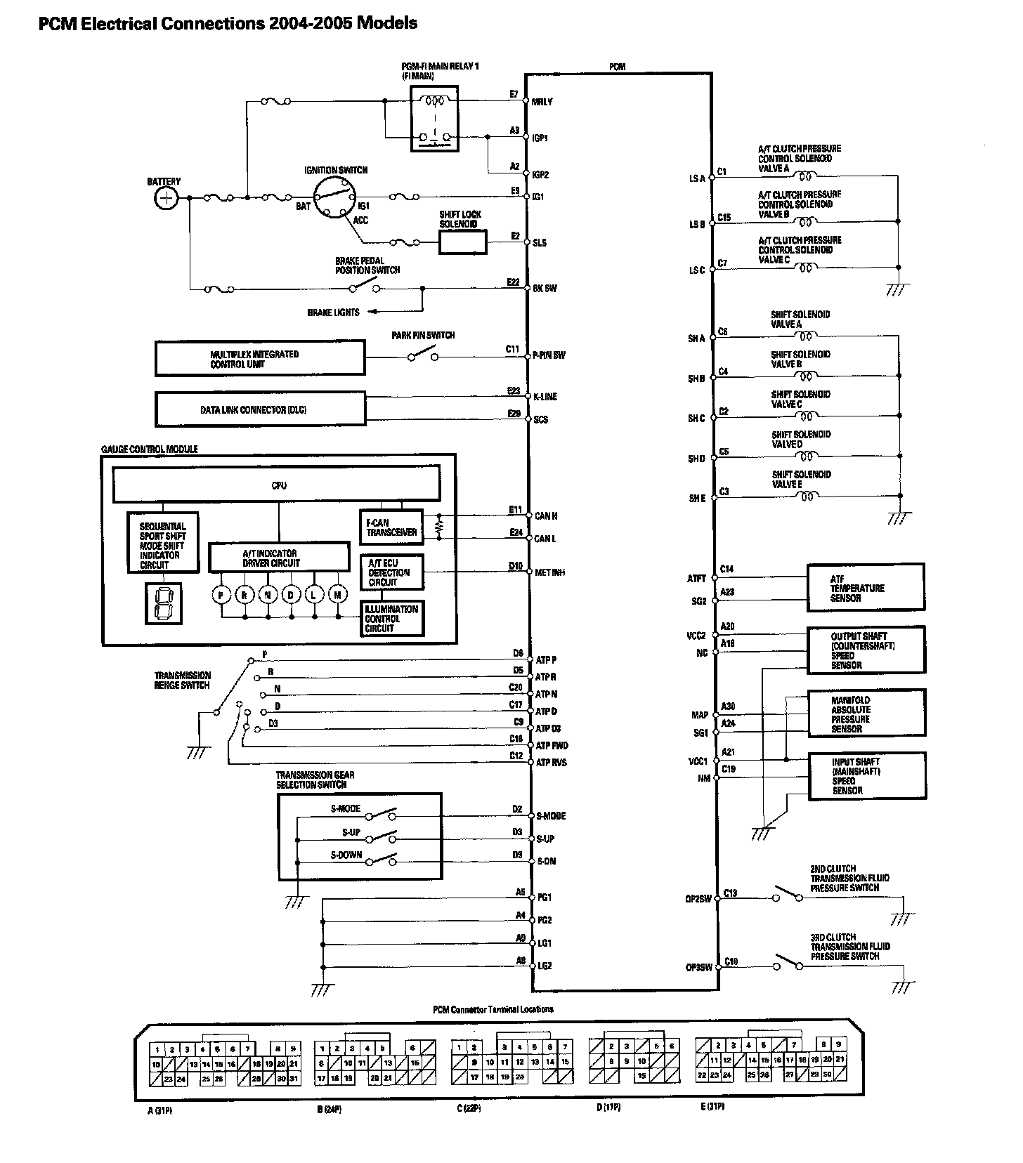 PCM Electrical Connections 2004-2005 Models: