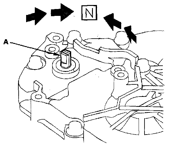 23. Set the selector control shaft (A) to the N position by turning the control lever on the torque converter side.