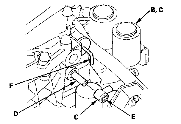 2. Remove the ATF cooler outlet line (F).