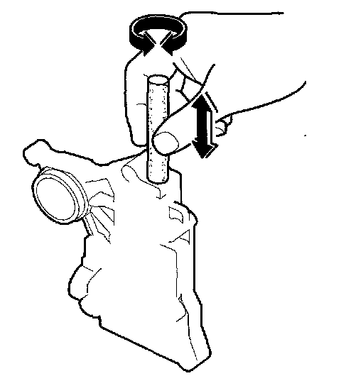 4. Roll up half a sheet of ATF-soaked # 600 paper and insert it in the valve bore of the sticking valve. Twist the paper slightly, so that it unrolls and fits the bore tightly, then polish the bore by twisting the paper as you push it in and out.