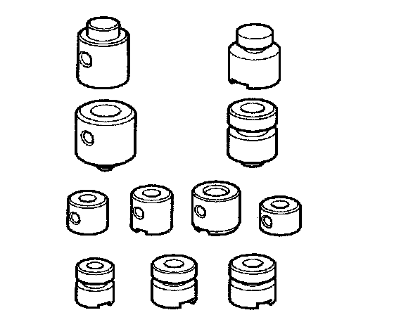 2. Install the valves and springs in the sequence shown for the main valve body. Refer to the valve cap illustrations, and install each valve cap so the end shown facing up will be facing the outside of the valve body.