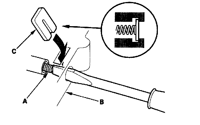 3. Install all the springs and seats. Insert the spring (A) in the valve, then install the valve in the valve body (B). Push the spring in with a screwdriver, then install the spring seat (C).