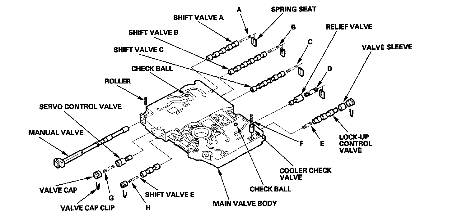 4. Check all valves for free movement. If any fail to slide freely, refer to valve body repair.