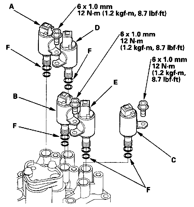 NOTE: The new shift solenoid valve is equipped with new O-rings. If you install a new shift solenoid valve, there is no need to replace its O-rings.