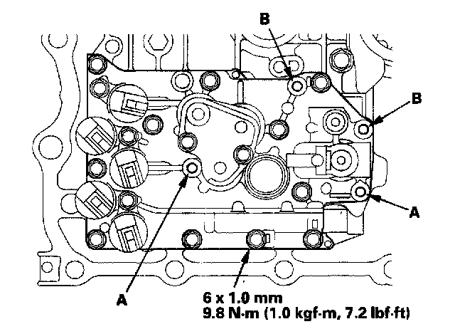 Valve Body and ATF Strainer Removal1. Remove the ATF feed pipes (A) and ATF joint pipes (B).