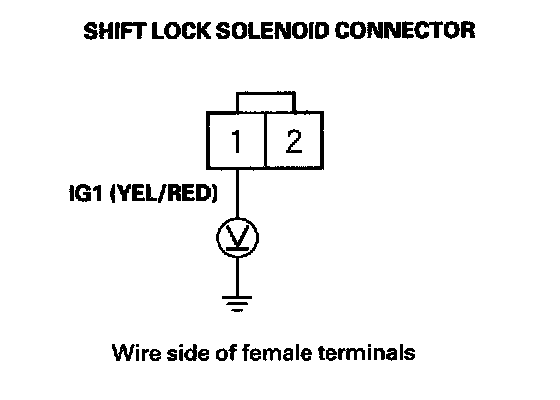 8. Measure the voltage between shift lock solenoid connector terminal No. 1 and body ground.