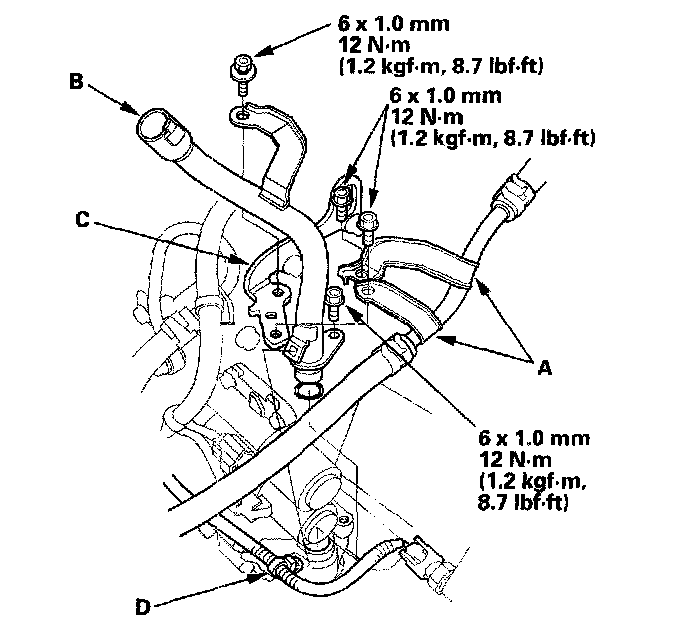 11. Remove the harness clamp (D), then remove the ATF dipstick guide pipe.