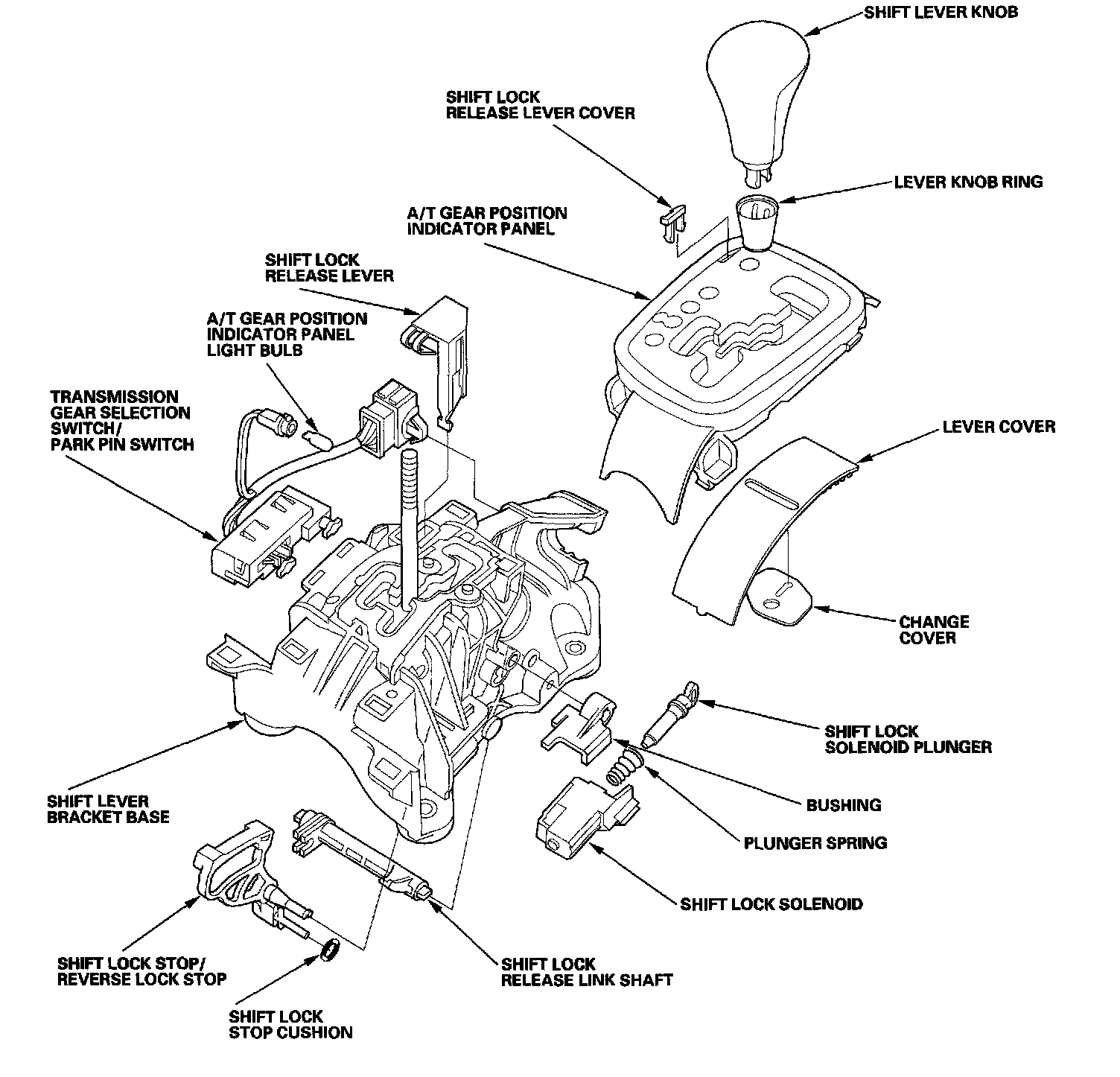 Apply silicon grease to movable joints of the shift lock/reverse lock mechanism.