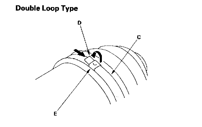 - If the boot band is a double loop type (C), lift up the band bend (D), and push it into the clip (E).