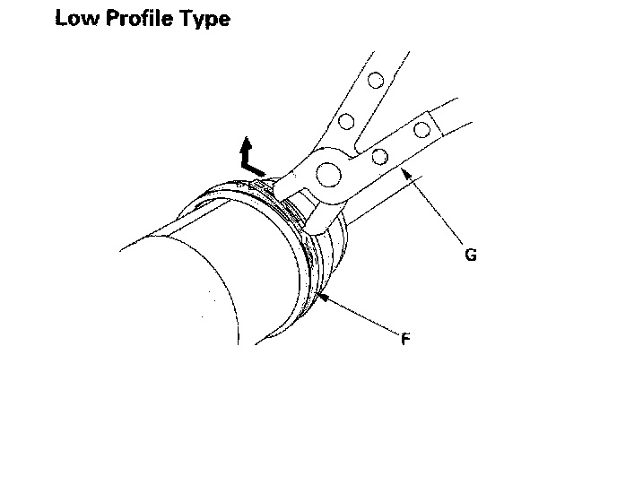 - If the boot band is a low profile type (F), pinch the boot band using commercially available boot band pincers (G).