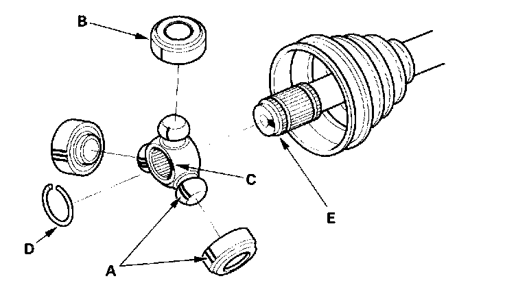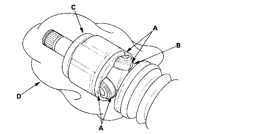 6. Mark the spider (C) and driveshaft (E) to identify the position of the spider on the shaft.