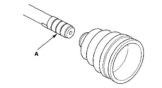 2. Slide the outboard boot (A) partially to the inboard joint side. Be careful not to damage the boot.