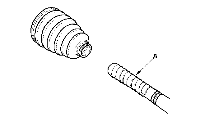 8. Wrap the splines on the driveshaft with vinyl tape (A) to prevent damage to the boot.
