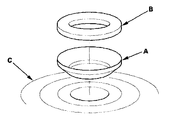 8. Thoroughly clean the spring washer (A) and washer (B) before installing them on the clutch housing side ball bearing (C). Note the installation direction of the spring washer.