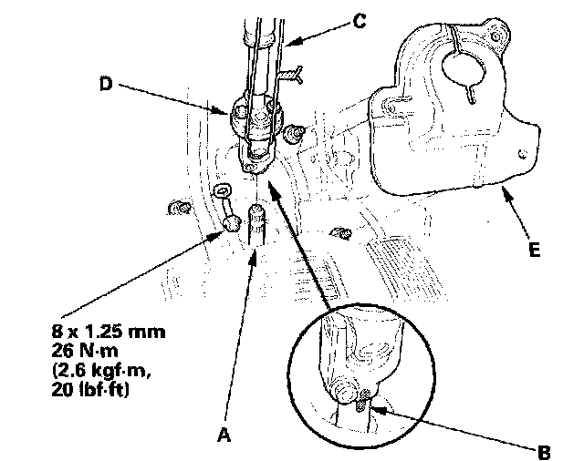 30. Connect the steering joint to the steering gearbox pinion shaft (A) by aligning the reference mark (B), and remove the wire (C) from the joint yoke (D).