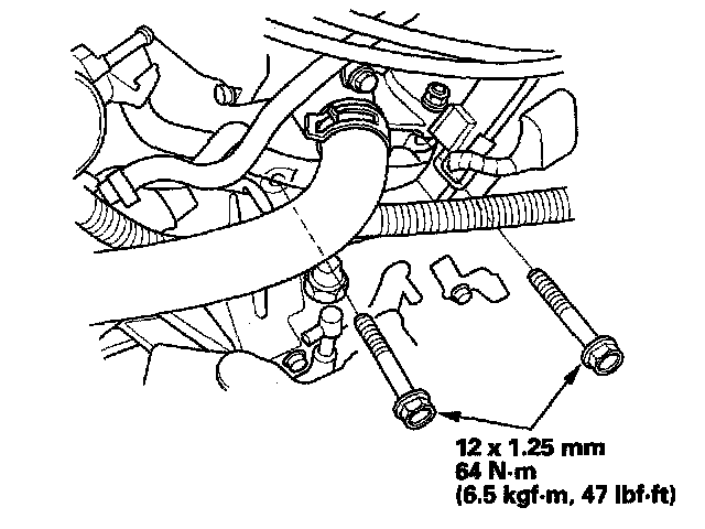 38. Install the engine front mount mounting bolt (A) and front mount stop (B).