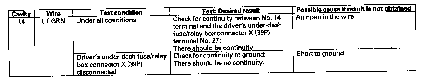 4. Reconnect the connector, and make these input tests at the connector.
