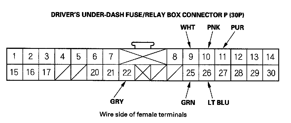 3. Disconnect driver's under-dash fuse/relay box connector P (30P).