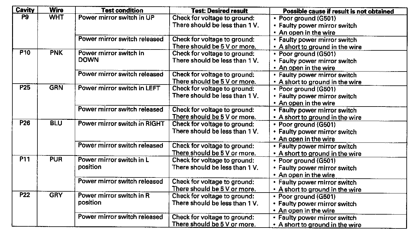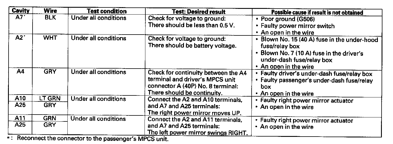 Power Mirror Circuit Input TestNOTE: Before testing, troubleshoot the multiplex integrated control system first using B-CAN System Diagnosis Test Mode A.