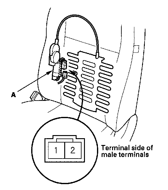 2. Disconnect the 2P connector from the lumbar support motor (A).