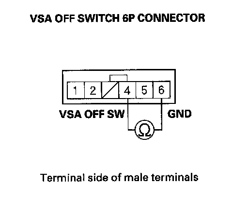 4. Check for continuity between the VSA OFF switch 6P connector terminal No. 4 and No. 6. There should be continuity when the switch is pressed, and no continuity when the switch is released.