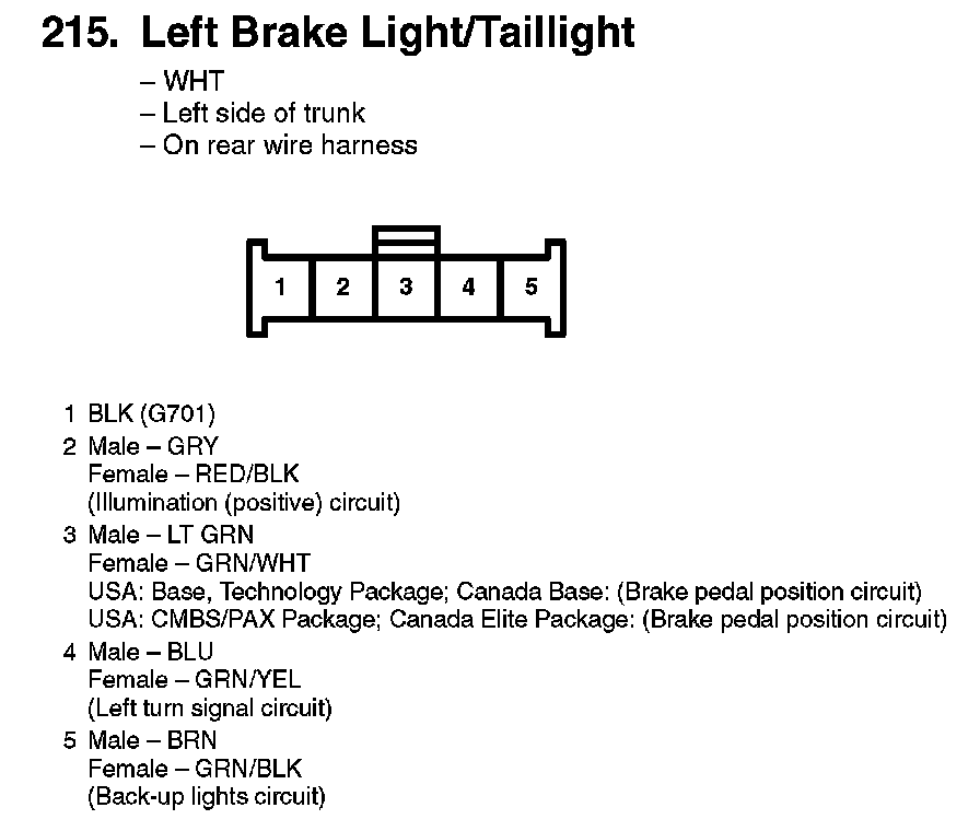 215. Left Brake Light/Taillight: