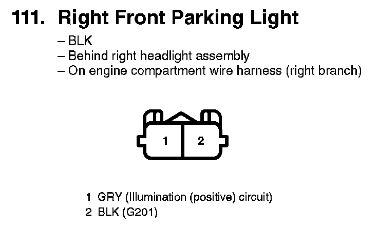 111. Right Front Parking Light:
