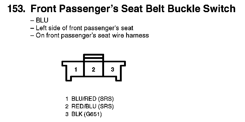 153. Front Passenger's Seat Belt Buckle Switch:
