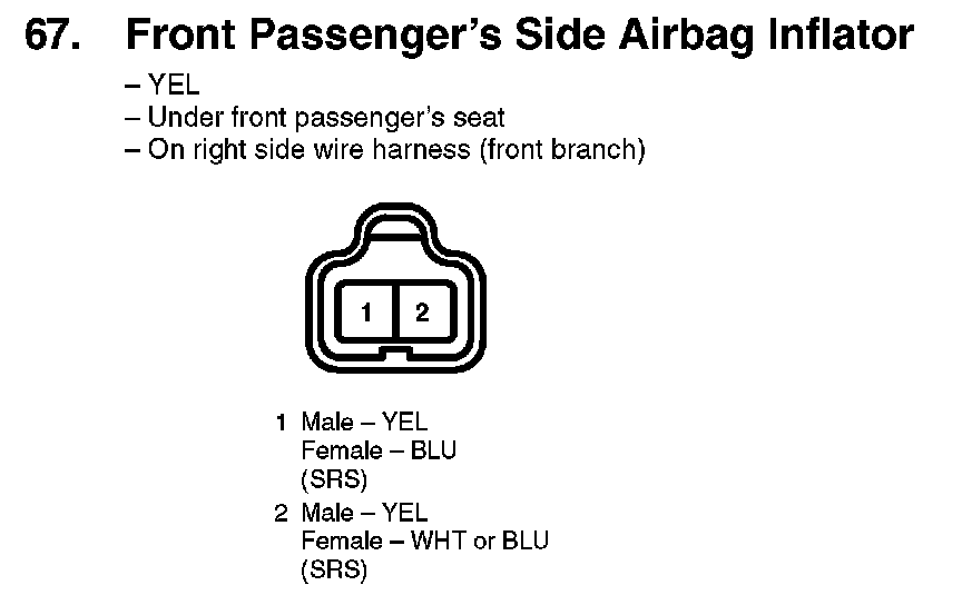 67. Front Passenger's Side Airbag Inflator: