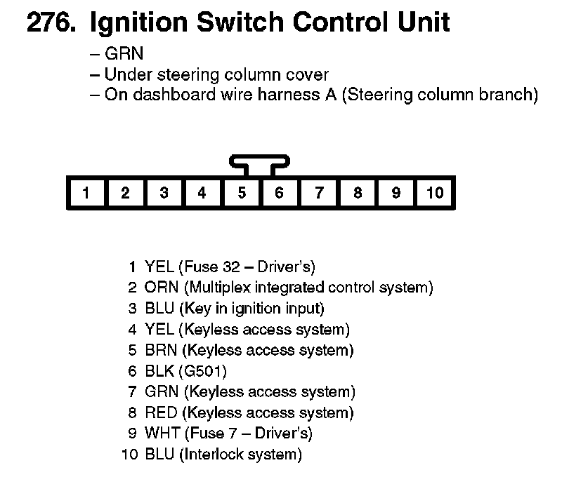 276. Ignition Switch Control Unit:
