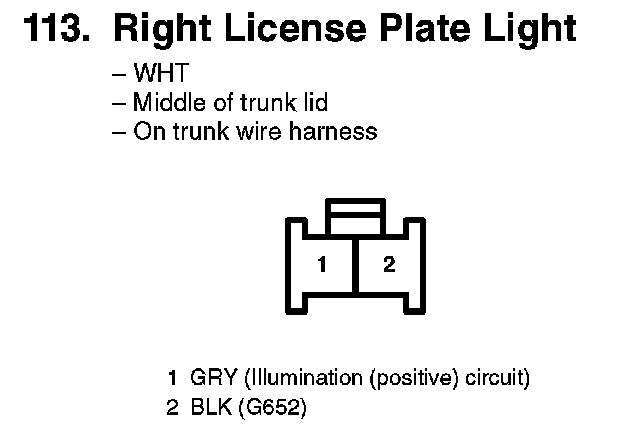 113. Right License Plate Light: