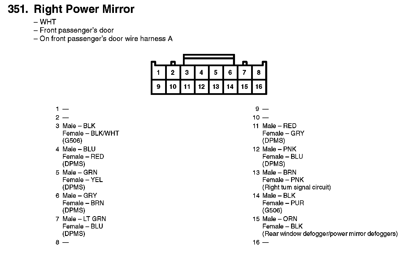 351. Right Power Mirror: