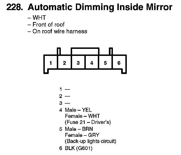 228. Automatic Dimming Inside Mirror: