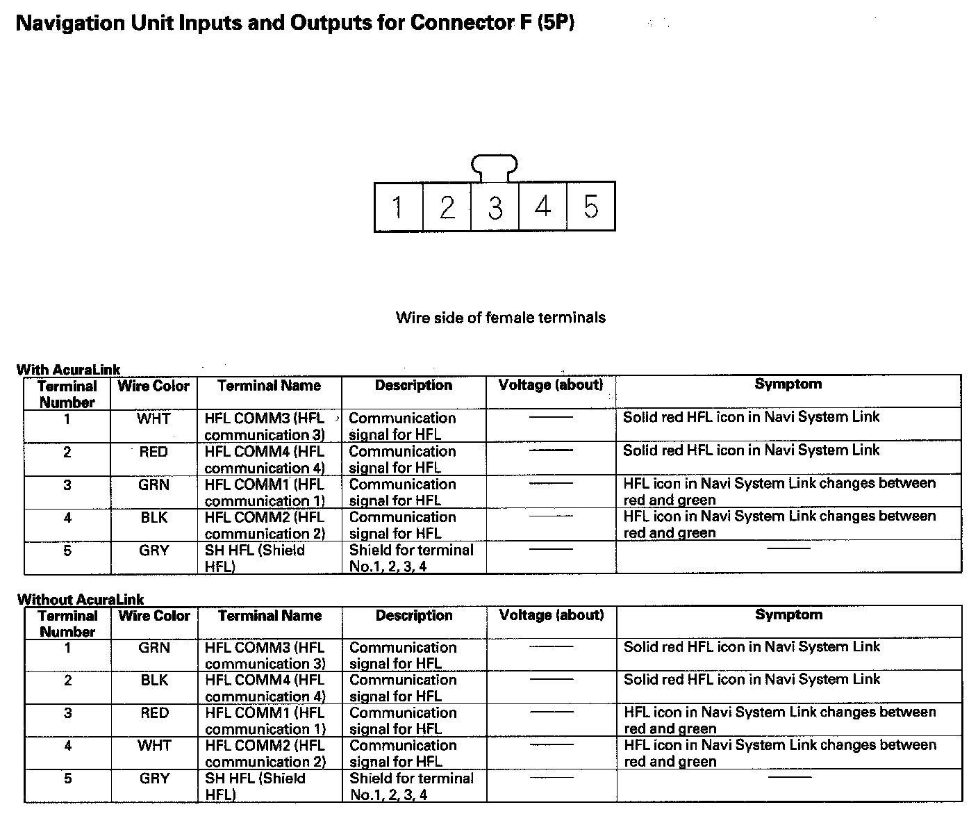 Navigation Unit Inputs And Outputs For Connector F (5P):