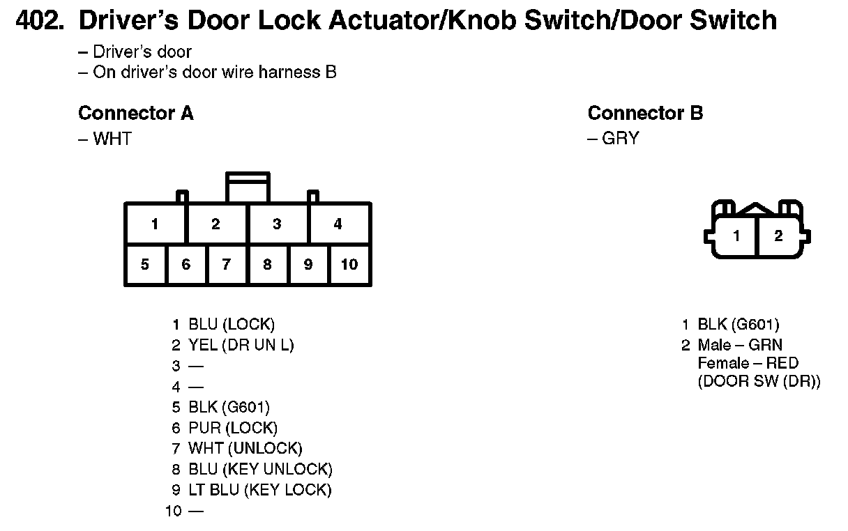 402. Driver's Door Lock Actuator/Knob Switch/Door Switch: