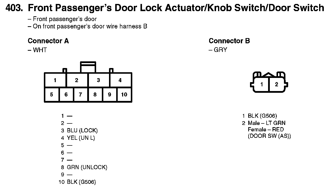 403. Front Passenger's Door Lock Actuator/Knob Switch/Door Switch: